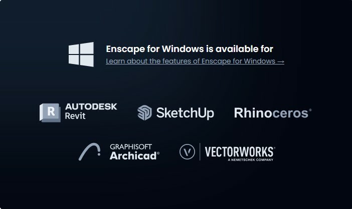 Chaos Enscape™ is a real-time rendering and virtual reality plugin for Revit, Rhino, SketchUp, Archicad, and Vectorworks.